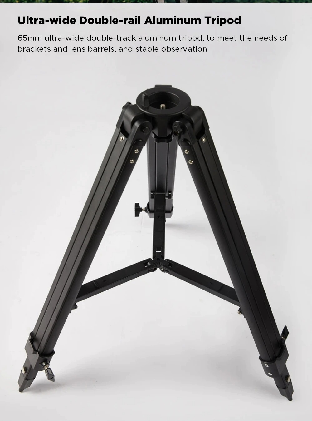 Tripod Aluminium Berkualitas Terdapat Tripod berbahan aluminium berkualitas yang kokoh menopang tropong dengan bukaan double track 65mm membuat teropong CELESTRON jauh lebih stabil.