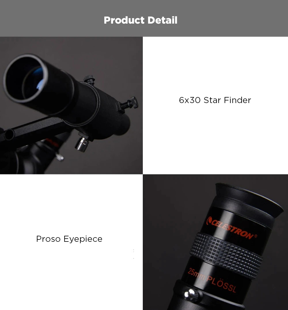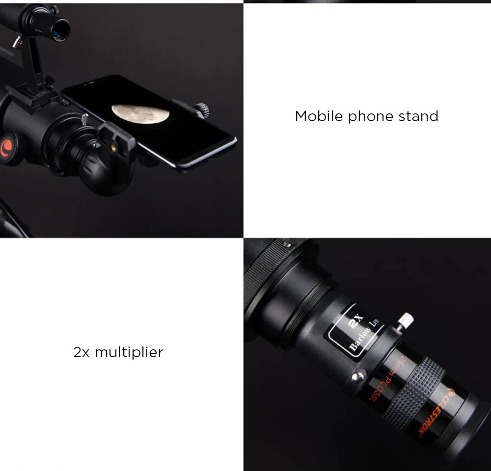 Banyak Aksesoris Pendukung Teropong bintang ini dilengkapi banyak aksesoris pendukung yang akan membuat proses observasi dengan teropong ini semakin mudah dan menyenangkan.