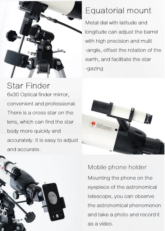 Teropong bintang dari BEEBEST ini hadir dengan lensa 90 mm dan focal length 600 mm. Dengan ini Anda dapat mengobservasi bintang dan bulan dengan jelas. Dilengkapi dengan tripod aluminium dan bantuan lensa eyepiece untuk membantu Anda mengamati bintang dengan stabil. Teropong ini sangat cocok bagi pemula atau dihadiahkan untuk anak Anda yang masih sekolah.